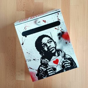 Une boîte aux lettres oubliée, repeinte,